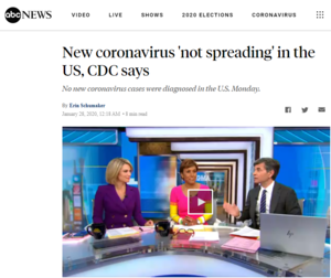 "If China’s been reporting about 800 [infections] with 25 deaths, we think the number is probably 10 times that number."[131]