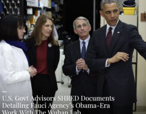 One week after the first reported outbreaks in China, scientists at the National Institute of Health in the United States informed the chief medical advisor to the president, Dr. Anthony Fauci,[3] that the SARS-CoV-2 genome sequence was "inconsistent with evolutionary theory."[4] This meant that it was likely man-made.[5] Three years earlier, on January 9, 2017, the Obama White House restored funding for gain-of-function research at the Wuhan Institute of Virology for research on the bat coronavirus.[6][7] Gain-of-function is to modify an animal virus so as to make it transmissible to humans.[8] The funds were administered by Dr. Anthony Fauci,[9] Fauci extended the funds,[10] but did not obtain approval from a mandatory Department of Health and Human Services review board as required.[11]