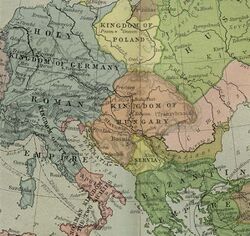 In the late 9th century, Transylvania was reached and conquered by the Hungarian conquerors. There is an ongoing scholarly debate over the demographics in Transylvania at the time. According to the theory of Daco-Roman continuity, Romanians continuously lived on the territory. Opponents of that hypothesis point to the lack of written, archaeological and linguistic evidence to support it.[45] Hungarian medieval chronicles claimed that the Székely people descended from the Huns, who remained in Transylvania, and later, in combination with the returning Hungarians, conquered the Carpathian Basin.[46][47][48][49] According to the Gesta Hungarorum, the Vlach (Blacorum, Blacus) leader Gelou ruled part of Transylvania before the Hungarians arrived. Historians debate whether he was a historical person or an imaginary figure. The gyulas from the seven chieftains of the Hungarians governed Transylvania in the 10th century. King Stephen I of Hungary asserted his claim to rule all lands dominated by Hungarian lords. He personally led his army against his maternal uncle Gyula III and Transylvania became part of the Kingdom of Hungary in 1002.[50] Place names derived from the Hungarian tribes evidence that major Hungarian groups settled in Transylvania from the 950s.[51][52] In the 12th and 13th centuries, Southeast and Northeast Transylvania was settled by Saxon colonists. In Romanian historiography, Vlachs constituted an important part of Transylvania's population even on the eve of the Mongol Invasions.[53][54] Hungarian historiography claims that the Vlach population entered Transylvania from the Balkans only in the 12th century,[55] and the devastating invasion of Mongols had also as consequence the large-scale immigration by Romanians, however the immigration of Romanians did not happen all at once, the process of settlement stretched over several centuries.[56] After the Battle of Kosovo and Ottoman arrival at the Hungarian border, thousands of Vlach and Serbian refugees came to Transylvania.