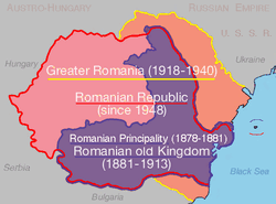 In 1690, the Habsburg monarchy gained possession of Transylvania through the Hungarian crown.[16][17][18] After the failure of Rákóczi's War of Independence in 1711,[19] Habsburg control of Transylvania was consolidated, and Hungarian Transylvanian princes were replaced with Habsburg imperial governors.[20][21] During the Hungarian Revolution of 1848, the Hungarian government proclaimed union with Transylvania in the April Laws of 1848.[22] After the failure of the revolution, the March Constitution of Austria decreed that the Principality of Transylvania be a separate crown land entirely independent of Hungary.[23] The separate status of Transylvania ended with the Austro-Hungarian Compromise of 1867,[24] and it was reincorporated into the Kingdom of Hungary (Transleithania) as part of the Austro-Hungarian Empire.[25] It was also during this period that Romanians experienced the awakening of self-consciousness as a nation, manifested in cultural and ideological movements such as Transylvanian School,[26] and drafted political petitions such as Supplex Libellus Valachorum.[27] After World War I, the National Assembly of Romanians from Transylvania proclaimed the Union of Transylvania with Romania on 1 December 1918, and Transylvania became part of the Kingdom of Romania by the Treaty of Trianon in 1920. In 1940, Northern Transylvania reverted to Hungary as a result of the Second Vienna Award, but it was returned to Romania after the end of World War II.