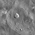 Elysium Mons is approximately 1.5 times as steep as any other Martian volcano at approximately 7-7.5°.[16][17] The caldera at the summit of Elysium Mons is approximately 13.5 km in diameter.[16][18] Extending past the rim of this central caldera are at least 18 sinuous channels thought to be the remnants of collapsed lava tubes and lava channels.[16]