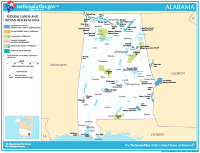 Federal lands and Indian reservations in Alabama Click to enlarge. |