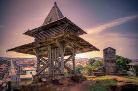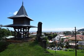 View of Cayenne from Fort Cépérou with belfry in foreground, May 2015.