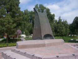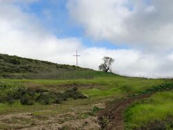 Besides the rock formation that spells out “CLU” atop Mount Clef Ridge, a cross is located immediately east from the landmark letters on the hilltop. The 30-foot tall cross is made from old telephone poles.[332] This site on Mount Clef is known as Dr. Rudy Edmund Living Laboratory and was dedicated on May 5, 2003, in order to enhance student research in biology and geology.[14] The trailhead is found at the north end of Mountclef Boulevard (corner of Mountclef Blvd. and Magellan Street).