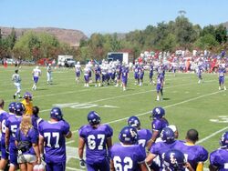 CLU joined the NCAA in 1991 and began playing at the Division II level as a member of the Western Football Conference.[225] As a SCIAC member, the Kingsmen won the conference championship in 2007, 2009, 2010, 2011, and 2012. Running back Brian Stuart received the Player of the Year award in 2009.[226] The team has a SCIAC rivalry with the Redlands Bulldogs where the teams battle each other annually for the trophy known as the Smudge Pot, a perpetual trophy introduced to the rivalry in 2012.[227][228]