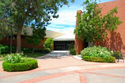 The center of the campus primarily features the Pearson Library as well as the Ullman Commons. Pearson Library holds 132,744 titles and 1,497 serial subscriptions.[50] In addition to its 136,000 titles, the library housed 72,316 e-books, 2,378 audiovisuals and 550 current serials as of 2010. Dedicated in 1985, Pearson Library is a selective depository for government documents and also provides typewriters, video-recorders, microcomputers, and audiovisual equipment. Through the Online Computer Library Center, it has access to resources at over 3,000 additional libraries. The library is adjacent to the 250-seat Preus-Brandt Forum Theatre. It is located at 135 Chapel Lane.[125] Pearson Library is staffed by nine employees: a library director, a collection development librarian, an information literacy librarian, an acquisitions librarian, an interlibrary loan librarian, a public services coordinator, and two circulation coordinators.[2]