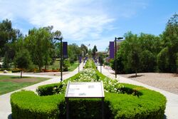 The grounds of the campus is dubbed the Barbara Collins Arboretum. Named after Barbara J. Collins, who taught microbiology and botany at CLU for 50 years, the arboretum selected and cataloged much of the campus flora. Many of the trees flank a natural creek that bisects the campus. Many native species to Southern California can be found on campus, including Campus Gardens, Garden flowers, Canadian flowers, and California wildflowers.[144] The arboretum opened in 2007 and Collins collected[145] and identified[146] over 100 species for the arboretum. Barbara J. Collins was a professor of biology for fifty years at Cal Lutheran. Besides the founder of the arboretum, she was the department chair and the sole member of the Interdisciplinary Major Committee for thirty years.[147] President John Sladek made the announcement during his inauguration in 2006 that the campus had been recognized as an Arboretum.[148]