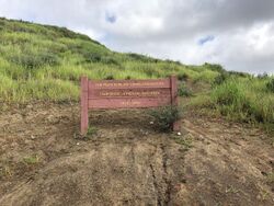 The northern section of the university campus contains trail access to Mount Clef Ridge Trail in Mount Clef Open Space. This trail later becomes Santa Rosa Trail, which enters Wildwood Regional Park and follows Mount Clef Ridge. Wildflower Butte Trail is another hiking trail which connects to Wildwood, with a trailhead from the parking area on Campus Drive, north of Olsen Road. This is an ancient Chumash trail which connects to Chumash sites such as Ven-37, Ven-6, and former Chumash village sites within Wildwood.[327][328][329]