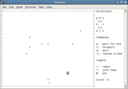 The game is turn-based. In the original game, the player character starts at a randomly selected location. In some derivative versions, such as the GNOME version, the player starts at the centre of the grid. The robots start at randomly selected locations on the grid. Every time the player character moves a square in any direction (horizontally, vertically, or diagonally), each robot moves one square closer to their new location, in whichever direction is the shortest path. If the player character collides with a robot, they die and the game ends.