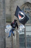 One of the biggest antifascist campaigns in Germany in recent years was the ultimately successful effort to block the annual Nazi-rallies in the east German city of Dresden in Saxony which had grown into "Europe's biggest gathering of Nazis".[72] Unlike the original Antifa which had links to the Communist Party of Germany and which was concerned with industrial working-class politics, the late 1980s and early 1990s, autonomists were independent anti-authoritarian libertarian Marxists and anarcho-communists not associated with any particular party. The publication Antifaschistisches Infoblatt, in operation since 1987, sought to expose radical nationalists publicly.[73]