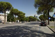 The boulevard enters the city centre from the south and intersects with Bajram Curri Boulevard near the Rinia Park. Later, it became part of the Skanderbeg Square and then continues north of the centre as Zogu I Boulevard.