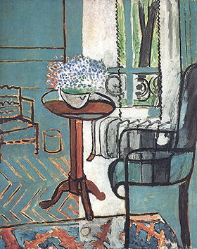 The Window: In a letter Matisse described this picture: "Through the window of the drawing room one sees the green of the garden and a black tree trunk, a basket of forget-me-nots on the table, a garden chair and a rug." - [3] Estimated value of this painting: $60 million.