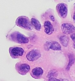 Histopathology of ovarian serous borderline tumor with hobnailing