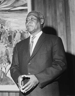 Inkosi Albert John Luthuli (very often spelt Lutuli;[1] c. 1898 – 21 July 1967), also known by his Zulu name Mvumbi (English language: continuous rain),[2] was a South Africa n teacher, activist, Nobel Peace Prize winner, and politician. Luthuli was elected president of the African National Congress (ANC) in 1952. At this time, an umbrella organisation that led opposition to the white minority government in South Africa. Luthuli ended up serving until his accidental death. He was awarded the 1960 Nobel Peace Prize for his role in the non-violent struggle against apartheid. He was the first person of African heritage to be awarded the Nobel Peace Prize. Luthuli was a lay preacher of the United Congregational Church of Southern Africa (UCCSA) based at its Groutville Congregational Church in Stanger, KwaZulu-Natal, where Luthuli was laid to rest upon his passing in 1967.[3]