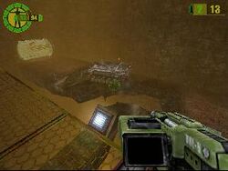 Parker traverses through the Ultor complex, eliminating any resistance Ultor throws at him, and even (with the help of Orion, a high-ranking Red Faction member) kidnapping a high-ranking Ultor administrator, Gryphon, for Eos, leader of the Red Faction.[16] Parker learns from Gryphon about Dr. Capek, who created "The Plague". Capek has been experimenting with nanotechnology, and the Plague is a side-effect of injections at the miners' annual medical checkup. Hendrix directs Parker to Capek's secret underground laboratory, where he and Eos meet up and take down Capek. As Capek dies, he tells Eos there is a cure for the Plague but refuses to tell her how to make it and dies. With Capek dead, the lab's self-destruction sequence initiates. Eos stays behind to find the files on the cure while Parker continues to the Communications center.[17] After sending a distress call to the Earth Defense Force, Parker destroys the missile defense system, so that he can stow away on a shuttle to an Ultor space station in Martian orbit to deactivate a laser defense system without getting shot down.[18]