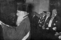In 1937, the Goga-Cuza government was the first to adopt and enact antisemitic legislation in the Kingdom of Romania, stripping over two hundred thousand Jews of their citizenship. That very same year, the head of the Romanian Orthodox Church, Patriarch Cristea made an infamous speech in which he described the Jews as parasites who suck the bone marrow of the Romanian people and who should leave the country.[11] The Orthodox church directly or indirectly supported far-right parties and antisemitic intellectuals in their anti-Jewish rhetoric.[12] At the time many Orthodox priests had become active in far-right politics, thus in the 1937 parliamentary elections 33 out of 103 Iron Guard candidates were orthodox priests. In 1938 an Orthodox priest named Alexandru Răzmeriţă, elaborated a plan for the total elimination of Jews in the cities and their deportation to forced labor camps in the countryside.[11]