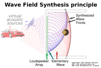 Research trends in wave field synthesis include the consideration of psychoacoustics to reduce the necessary number of loudspeakers, and to implement complicated sound radiation properties so that a virtual grand piano sounds as grand as in real life.[4][5][6]