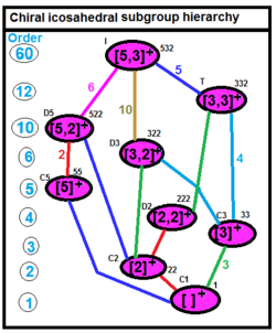 | I | [5,3]+ | 532 | 532 | A5 | 60 | 2 | 1 | all rotations | ||