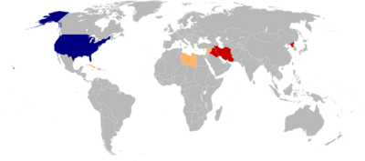 The notion of such an axis was used to pinpoint these common enemies of the United States and to rally the American populace in support of the War on Terror. The countries originally covered by the term were Iran, Ba'athist Iraq, and North Korea. In response, Iran formed a political alliance that it called the "Axis of Resistance" comprising Iran, Syria and Hezbollah.