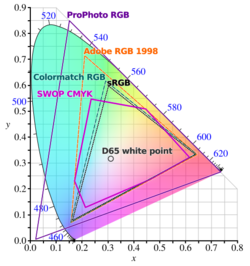 A color space is a specific organization of colors. In combination with color profiling supported by various physical devices, it supports reproducible representations of color – whether such representation entails an analog or a digital representation. A color space may be arbitrary, i.e. with physically realized colors assigned to a set of physical color swatches with corresponding assigned color names (including discrete numbers in – for example – the Pantone collection), or structured with mathematical rigor (as with the NCS System, Adobe RGB and sRGB). A "color space" is a useful conceptual tool for understanding the color capabilities of a particular device or digital file. When trying to reproduce color on another device, color spaces can show whether shadow/highlight detail and color saturation can be retained, and by how much either will be compromised.