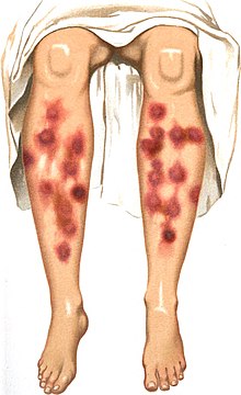 | Symptoms | Tender red lumps within the skin of both shins[1] |