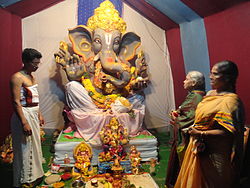 Ganesha is not one of the Big Three, and yet he is one of the most iconic and widely-worshiped gods in the Hindu pantheon. He is worshiped before significant undertakings, and he's the patron of bankers, authors, and intellectuals.[40] Hindus honor him with a ten-day festival in fall called Ganesh Chaturthi.[41]