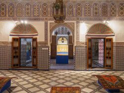 Elsewhere in the medina, the Dar El Bacha hosts the Musée des Confluences, which opened in 2017.[195] The museum holds temporary exhibits highlighting different facets of Moroccan culture[196] as well as various art objects from different cultures across the world.[197] The Tiskiwin Museum is housed in another restored medina mansion and features a collection of artifacts from across the former the trans-Saharan trade routes that were connected to the city.[198][199] Various other small and often privately owned museums also exist in the medina, such as the Musée Boucharouite and the Perfume Museum (Musée du Parfum).[200][201][202] Dar Bellarj, an arts center located in a former mansion next to the Ben Youssef Mosque, also occasionally hosts art exhibits.[203][200]