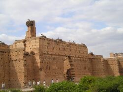 In the early 16th century, Marrakesh again became the capital of Morocco, after a period when it was the seat of the Hintata emirs. It quickly reestablished its status, especially during the reigns of the Saadian sultans Abdallah al-Ghalib and Ahmad al-Mansur.[42][43] Thanks to the wealth amassed by the Sultans, Marrakesh was embellished with sumptuous palaces while its ruined monuments were restored. El Badi Palace, begun by Ahmad al-Mansur in 1578, was made with costly materials including marble from Italy.[44][45] The palace was intended primarily for hosting lavish receptions for ambassadors from Spain, England, and the Ottoman Empire, showcasing Saadian Morocco as a nation whose power and influence reached as far as the borders of Niger and Mali.[46] Under the Saadian dynasty, Marrakesh experienced a golden age,[47] and regained its former position as a point of contact for caravan routes from the Maghreb, the Mediterranean and sub-Saharan Africa.