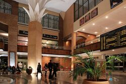 The Marrakesh-Menara Airport (RAK) is 3 km (1.9 mi) southwest of the city centre. It is an international facility that receives several European flights as well as flights from Casablanca and several Arab nations.[243] The airport is at an elevation of 471 metres (1,545 ft) at [ ⚑ ] 31°36′25″N 008°02′11″W / 31.60694°N 8.03639°W.[244] It has two formal passenger terminals; these are more or less combined into one large terminal. A third terminal is being built.[245] The existing T1 and T2 terminals offer a space of 42,000 m2 (450,000 sq ft) and have a capacity of 4.5 million passengers per year. The blacktopped runway is 4.5 km (2.8 mi) long and 45 m (148 ft) wide. The airport has parking space for 14 Boeing 737 and four Boeing 747 aircraft. The separate freight terminal has 340 m2 (3,700 sq ft) of covered space.[246]