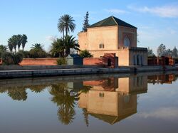 In 1125, the preacher Ibn Tumart settled in Tin Mal in the mountains to the south of Marrakesh, founding the Almohad movement. This new faction, composed mainly of Masmuda tribesmen, followed a doctrine of radical reform with Ibn Tumart as the mahdi, a messianic figure. He preached against the Almoravids and influenced a revolt which succeeded in bringing about the fall of nearby Aghmat, but stopped short of bringing down Marrakesh following an unsuccessful siege in 1130.[6] Ibn Tumart died shortly after in the same year, but his successor Abd al-Mu'min took over the political leadership of the movement and captured Marrakesh in 1147 after a siege of several months.[29] The Almohads purged the Almoravid population over three days and established the city as their new capital.[30] They went on to take over much of the Almoravids' former territory in Africa and the Iberian Peninsula. In 1147, shortly after the city's conquest, Abd al-Mu'min founded the Kutubiyya Mosque (or Koutoubia Mosque), next to the former Almoravid palace, to serve as the city's new main mosque.[31] The Almoravid mosques were either demolished or abandoned as the Almohads enacted their religious reforms.[30] Abd al-Mu'min was also responsible for establishing the Menara Gardens in 1157, while his successor Abu Ya'qub Yusuf (r. 1163–1184) began the Agdal Gardens.[32][33] Ya'qub al-Mansur (r. 1184–1199), possibly on the orders of his father Abu Ya'qub Yusuf, was responsible for building the Kasbah, a citadel and palace district on the south side of the city.[34][35] The Kasbah housed the center of government and the residence of the caliph, a title borne by the Almohad rulers to rival the eastern Abbasid Caliphate. In part because of these various additions, the Almohads also improved the water supply system and created water reservoirs to irrigate their gardens.[36] Thanks to its economic, political, and cultural importance, Marrakesh hosted many writers, artists, and intellectuals, many of them from Al-Andalus, including the famous philosopher Averroes of Cordoba.[37][38]