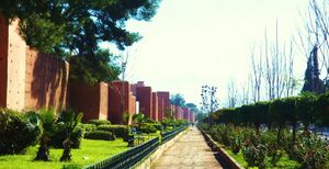 The city is home to a number of gardens, both historical and modern. The largest and oldest gardens in the city are the Menara gardens to the west and the Agdal Gardens to the south. The Menara Gardens were established in 1157 by the Almohad ruler Abd al-Mu'min.[137][33] They are centered around a large water reservoir surrounded by orchards and olive groves. A 19th-century pavilion stands at the edge of the reservoir. The Agdal Gardens were established during the reign of Abu Ya'qub Yusuf (r. 1163–1184) and extend over a larger area today, containing several water basins and palace structures.[33] The Agdal Gardens cover about 340 hectares (1.3 sq mi) and are surrounded by a circuit of pisé walls,[138] while the Menara Gardens cover around 96 hectares (0.37 sq mi).[137] The water reservoirs for both gardens were supplied with water through an old hydraulic system known as khettaras, which conveyed water from the foothills of the nearby Atlas Mountains.[139][140]