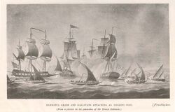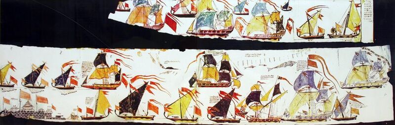 A large portion of the Maratha empire was coastline, which had been secured by the potent Maratha Navy under commanders such as Kanhoji Angre. He successfully kept foreign naval ships at bay, particularly those of the Portuguese and British.[16] Securing the coastal areas and building land-based fortifications were crucial aspects of the Maratha's defensive strategy and regional military history.