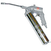 - Air-powered (pneumatic), where compressed air is directed to the gun by hoses, the air pressure serving to force the grease through the aperture. Russell Gray, inventor of the air-powered grease gun, founded Graco based on this invention.[citation needed]