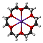 Alkali metal cations do not usually form coordination complexes with simple Lewis bases due to their low charge of just +1 and their relatively large size; thus the Li+ ion forms most complexes and the heavier alkali metal ions form less and less (though exceptions occur for weak complexes).[11]:90 Lithium in particular has a very rich coordination chemistry in which it exhibits coordination numbers from 1 to 12, although octahedral hexacoordination is its preferred mode.[11]:90–1 In aqueous solution, the alkali metal ions exist as octahedral hexahydrate complexes [M(H2O)6]+, with the exception of the lithium ion, which due to its small size forms tetrahedral tetrahydrate complexes [Li(H2O)4]+; the alkali metals form these complexes because their ions are attracted by electrostatic forces of attraction to the polar water molecules. Because of this, anhydrous salts containing alkali metal cations are often used as desiccants.[66] Alkali metals also readily form complexes with crown ethers (e.g. 12-crown-4 for Li+, 15-crown-5 for Na+, 18-crown-6 for K+, and 21-crown-7 for Rb+) and cryptands due to electrostatic attraction.[66]