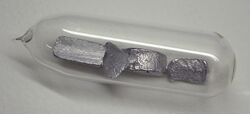 For several years in the 1950s and 1960s, a by-product of the potassium production called Alkarb was a main source for rubidium. Alkarb contained 21% rubidium while the rest was potassium and a small fraction of caesium.[191] Today the largest producers of caesium, for example the Tanco Mine in Manitoba, Canada, produce rubidium as by-product from pollucite.[192] Today, a common method for separating rubidium from potassium and caesium is the fractional crystallisation of a rubidium and caesium alum (Cs, Rb)Al(SO4)2·12H2O, which yields pure rubidium alum after approximately 30 recrystallisations.[192][193] The limited applications and the lack of a mineral rich in rubidium limit the production of rubidium compounds to 2 to 4 tonnes per year.[192] Caesium, however, is not produced from the above reaction. Instead, the mining of pollucite ore is the main method of obtaining pure caesium, extracted from the ore mainly by three methods: acid digestion, alkaline decomposition, and direct reduction.[192][194] Both metals are produced as by-products of lithium production: after 1958, when interest in lithium's thermonuclear properties increased sharply, the production of rubidium and caesium also increased correspondingly.[11]:71 Pure rubidium and caesium metals are produced by reducing their chlorides with calcium metal at 750 °C and low pressure.[11]:74