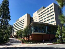 Hospitality constituents of the university include departments not directly related to student life or administration. The Hospitality department manages the university's two on-campus hotels, the UCLA Guest House and the Meyer and Renee Luskin Conference Center. The 61-room Guest House services those visiting the university for campus-related activities.[199] The department also manages the UCLA Conference Center, a 40-acre (0.2 km2) conference center in the San Bernardino Mountains near Lake Arrowhead.[200] Hospitality also operates UCLA Catering,[201] a vending operation, and a summer conference center located on the Westwood campus.[202]