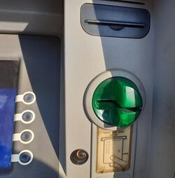 Instances of skimming have been reported where the perpetrator has put over the card slot of an automated teller machine, a device that reads the magnetic strip as the user unknowingly passes their card through it.[23] These devices are often used in conjunction with a miniature camera to read the user's personal identification number at the same time.[24] This method is being used in many parts of the world, including South America, Argentina,[25] and Europe.[26]