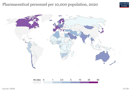 At the international level, the World Health Organization estimates a shortage of almost 4.3 million doctors, midwives, nurses, and support workers worldwide to meet target coverage levels of essential primary health care interventions.[45] The shortage is reported most severe in 57 of the poorest countries, especially in sub-Saharan Africa.