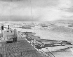 From Handwiki Operation Blue Nose was a 1947 U.S. Naval mission to explore under the Polar ice cap in the Chukchi Sea in the Arctic using submarines.[1][2] The operation consisted of the submarines USS BOARFISH (SS-327), USS CAIMAN (SS-323), and USS CABEZON (SS-334), and submarine tender USS NEREUS (AS-17) took part in CTG 17.3. Operation Blue Nose operated under-ice in the Chukchi Sea were under the command of RADM Allan R. McCann, Commander, Submarine Force, U.S. Pacific or COMSUBPAC. USS BOARFISH was the flag ship and was specially equipped and trained in the U.S. Navy's effort to explore and develop submarine under-ice operational capability in the harsh arctic environment. Special sonar developed by the Arctic Submarine Laboratory[3] was installed on USS BOARFISH. Dr. Waldo K. Lyon,[4] ASL founder was on board to operate the sonar and to conduct other testing for the operation.