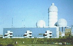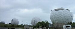 During the Cold War period, the United States Army Security Agency built an airspace surveillance and listening station on the man-made hill called Teufelsberg, located in the former West Berlin region of West Germany, to listen to Soviet, East German and other Warsaw Pact nations' military radio communications traffic.[2][3] The listening station named Field Station Berlin (also known as USM 620 Kilo) was mainly operated by the US National Security Agency (NSA) and served as part of the worldwide surveillance network ECHELON.[3] The installation was also shared with the British Army 26th Signal Battalion and 13th Signal Regiment since it was located in the British occupation zone. During the German reunification process in 1989 and 1990, the facility's electronic equipment were removed and the amassed classified information archives destroyed as it had now become redundant after the end of the Cold War. In 1991 the US and British withdrew from Teufelsberg, and the Senate of Berlin sold the 4.7-hectare (12-acre) area of the listening station for 5.2 million Deutsch Mark to a private investor consortium.[2][3]