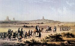 Heinrich Barth approaching Timbuktu on September 7, 1853, as depicted by Martin Bernatz.