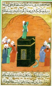 The history of slavery in the Muslim world began with institutions inherited from pre-Islamic Arabia.[1] The practices of keeping slaves in the Muslim world nevertheless developed in radically different ways in different Muslim states based on a range of social-political factors, as well as the more immediate economic and logistical considerations of the Arab slave trade. As a general principle, Islam encouraged the manumission of Muslim slaves as a way of expiating sins,[2] and many early converts to Islam, such as Bilal, were former slaves.[3][4][5][6] However, Islam never banned the practice, and it persisted as an important institution in the Muslim world through to the modern era.