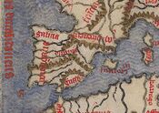 In Liber Floridus (1125), by Lambert of Saint-Omer, showing the names Galitia, Hispania, Lusitania, and Wasconia, among others