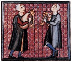 In these cities and villages the emergence of an associative movement led to the creation of permanent city councils, and the organization of artisan guilds or confrarías,[113] which would in time acquire a religious hue just to avoid being banned or punished in their patrimonies.[114] These new burgs also allowed a number of minor noble houses to consolidate power by occupying the new administrative and political offices, in open competition with the new classes: mayors, aldermen (regedores, alcaldes, justiças), agents and other officials (procuradores, notarios, avogados) and judges (juizes) of the town council; or mordomos and vigarios (leader and deputies) of the diverse guilds.[115]