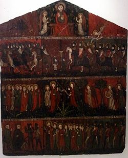 In terms of religion, most were Roman Catholics, although the local rites—known today as Mozarabic rites—were notably different from those used in most of Western Europe. No Arian, Priscillianist, or Pagan organizations are known to have survived during the High Middle Ages.[56] However, there were still pagans and pagan shrines in the Bierzo region during the 7th century, whilst Arian or Priscillianist tonsure—seen as long hair, with only a partial tonsure atop the head—was in use in Galicia up to 681, when it was forbidden at a council in Toledo. There were no known Muslim communities in Galicia and northern Portugal, other than Moor serfs. Records of Hebrew people are also uncommon in local charters until the 12th century, except as travelers and merchants.[57]