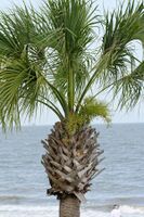 The Arecaceae () is a family of perennial, flowering plants in the monocot order Arecales. Their growth form can be climbers, shrubs, tree-like and stemless plants, all commonly known as palms. Those having a tree-like form are called palm trees.[3] Currently, 181 genera with around 2,600 species are known,[4][5] most of which are restricted to tropical and subtropical climates. Most palms are distinguished by their large, compound, evergreen leaves, known as fronds, arranged at the top of an unbranched stem, except for the Hyphaene genus, who has branched palms. However, palms exhibit an enormous diversity in physical characteristics and inhabit nearly every type of habitat within their range, from rainforests to deserts.
