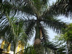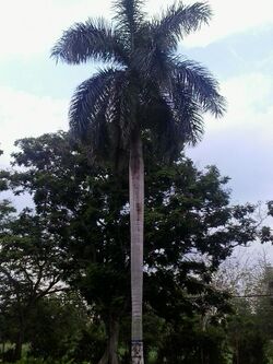Roystonea regia specimens. The characteristic crownshaft and apex shoot, or 'spear', are visible.