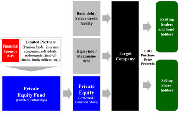 The term LBO is usually employed when a financial sponsor acquires a company. However, many corporate transactions are partially funded by bank debt, thus effectively also representing an LBO. LBOs can have many different forms such as management buyout (MBO), management buy-in (MBI), secondary buyout and tertiary buyout, among others, and can occur in growth situations, restructuring situations, and insolvencies. LBOs mostly occur in private companies, but can also be employed with public companies (in a so-called PtP transaction – public-to-private).