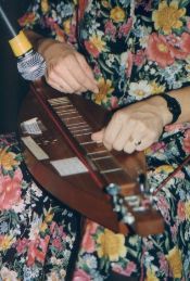 The Appalachian dulcimer is a fretted string instrument of the zither family, typically with three or four strings. The body extends the length of the fingerboard, and its fretting is generally diatonic.