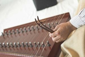 The early version of the dulcimer (santur) was known in cultures from Greece to Mongolia and was known in India and throughout the Middle East and was widely used in rural areas due to its portability and relative ease of use. It was often used to accompany weddings and dances. It later became an instrument that was associated with folk music and buskers.